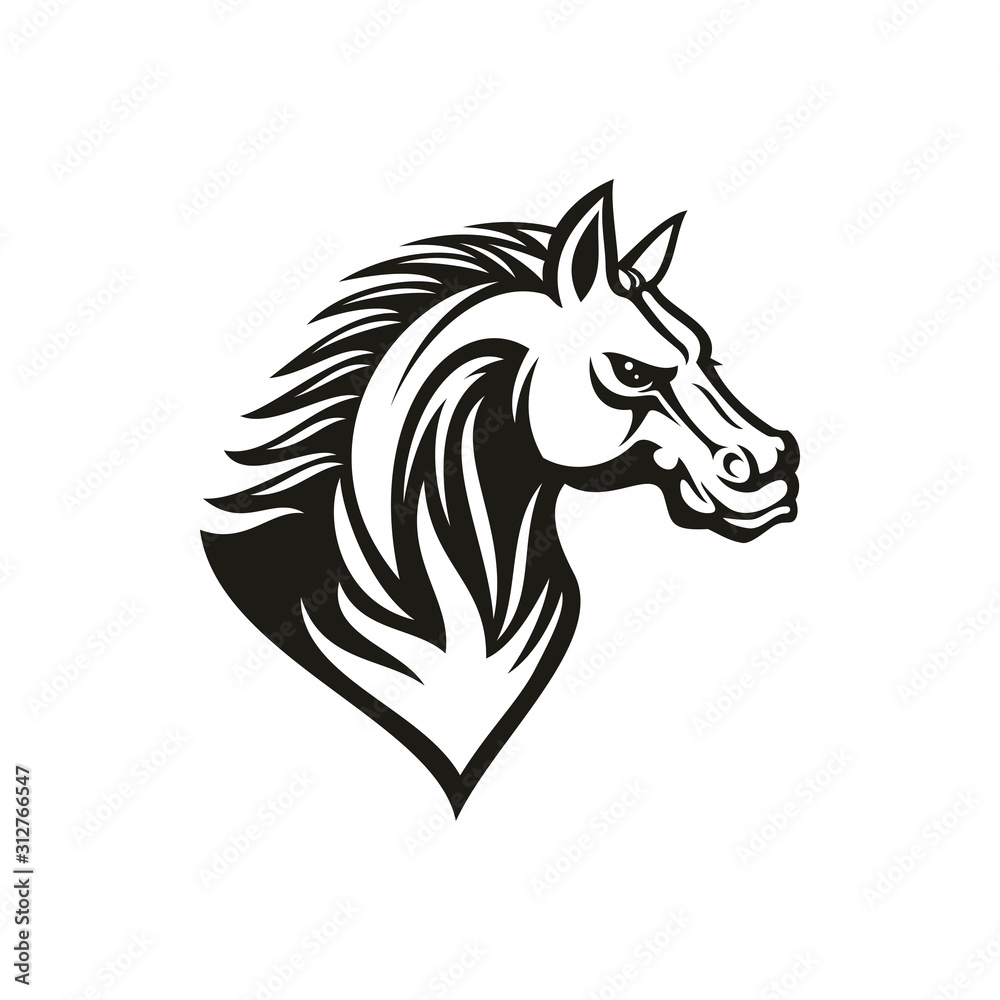 Thoroughbred Racehorse Animal Isolated Profile Of Horse Head Vector Mustang Stallion Monochrome Tattoo Mascot Stock Vector Adobe Stock